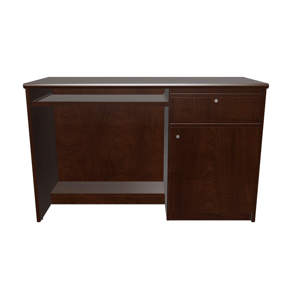 Enhance your office organization with the Arc side rack. Crafted from high-quality mahogany wood/veneer with a sleek Jacobean finish, this side rack effortlessly elevates any workspace. Designed for maximum efficiency, it features a smooth keyboard tray, a spacious drawer, and a generous shutter to keep all your office essentials organized. The black wire cup in the center ensures clutter-free cable management, while the roomy top surface provides ample space for your office equipment, ensuring everything you need is within reach. Pair it with Arc desk and credenza for maximum style and functionality.