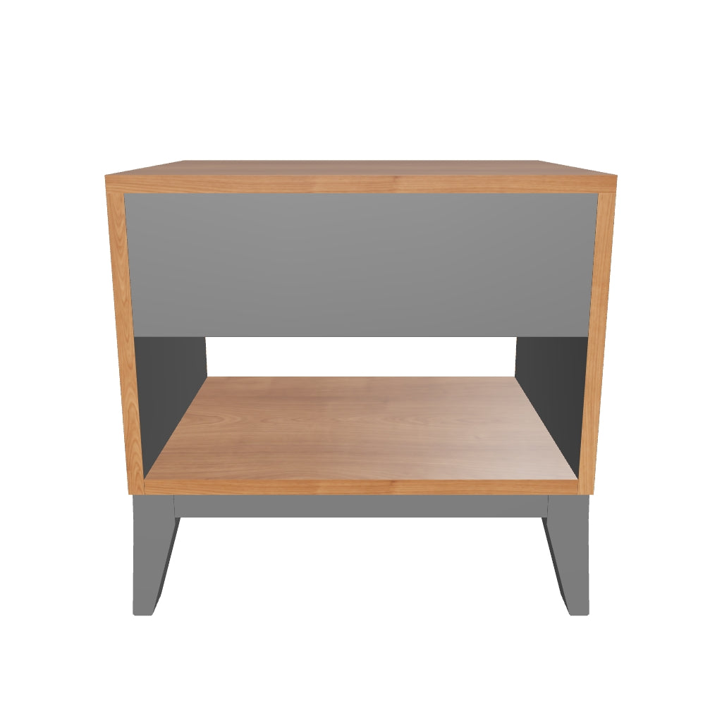 Keep everything within arm's reach with the elegant Quest bedside table. Crafted from high-quality thermoset and MFC, it boasts a chic yellow chestnut and charcoal grey finish, paired with sturdy wooden legs finished in charcoal grey. Designed for style and functionality, the spacious table top is perfect for placing a lamp, clock, or your favorite decorative pieces, while the single drawer offers convenient storage for your essentials. Below, an open cubby space adds extra room for books, magazines, or other items, making this bedside table a versatile addition to your room.