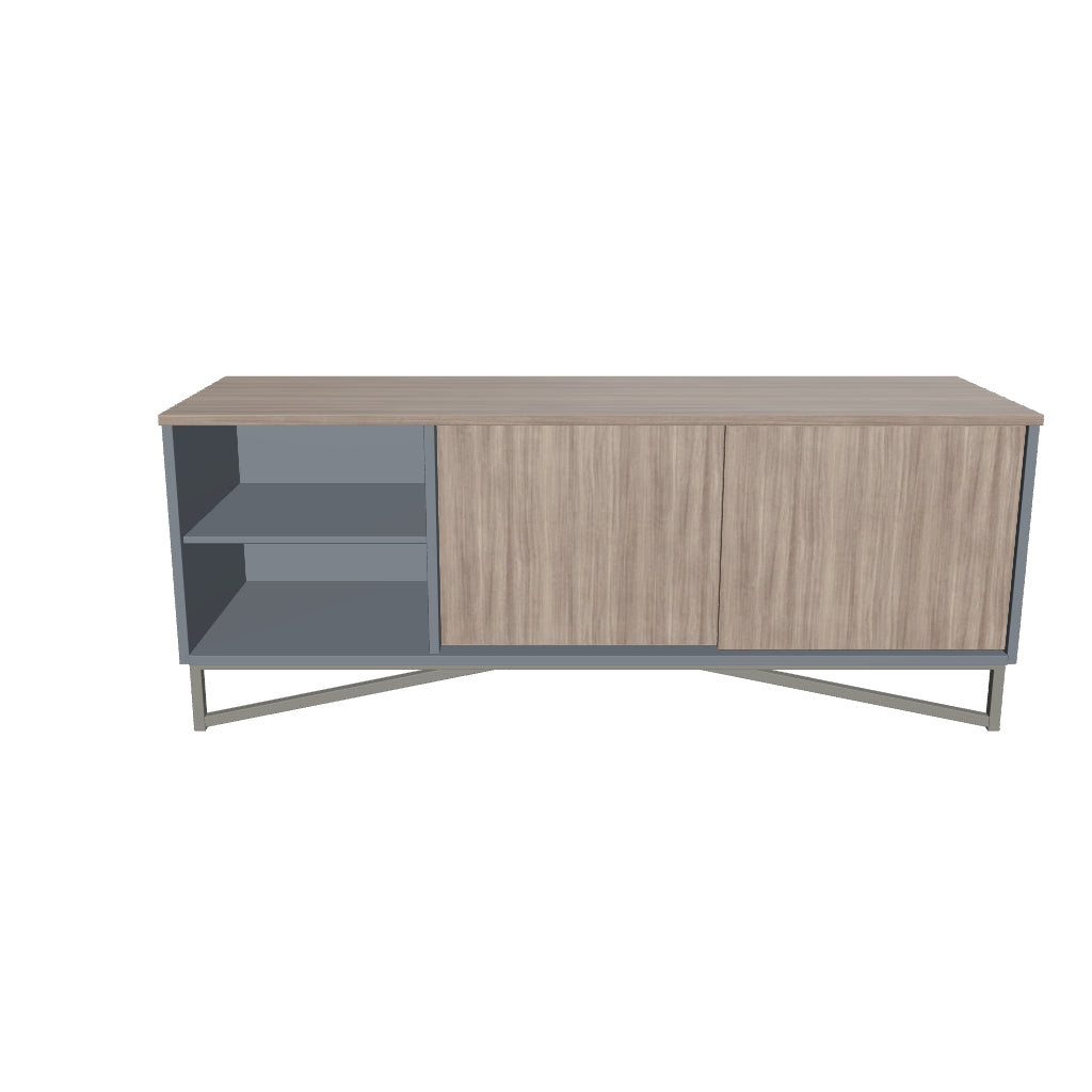 Need some extra storage around the office? The Callisto credenza is the ideal solution. Crafted from high-quality natural eucalyptus with a carcass in matt formite, this clean-lined and easy-to-maintain credenza accentuates a chic modern look that easily blends with any office interior. The credenza features two large cabinets with sliding cabinets and open compartments with an adjustable shelf in each, offering customizable storage for files, folders, books, documents and more. Handle-less soft-closing shutters with a push-to-open mechanism ensure easy access of all essentials. The ample top provides additional place for keeping office items as well as displaying decorative objects while black powder coated metallic legs provide sturdiness to the overall design. Pair this modern piece with the Callisto executive office desk and side table for an optimal office solution.