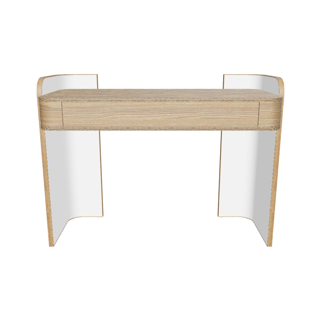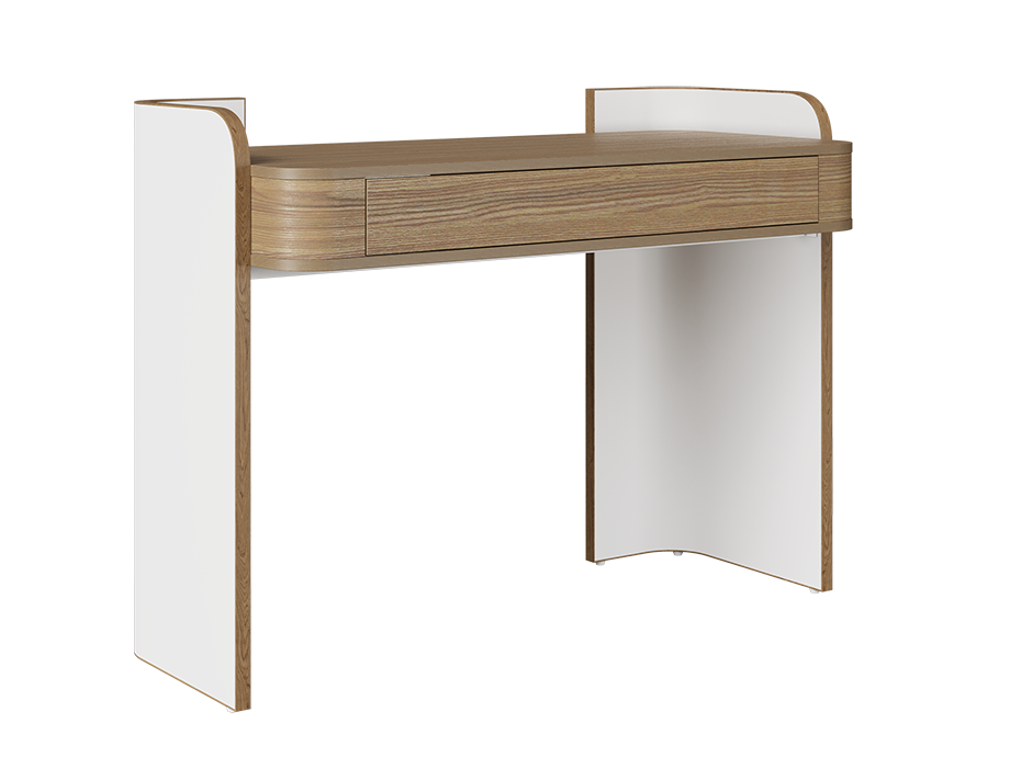 Experience contemporary style and functionality with our modern Linea dresser. Featuring a minimal, compact, and unique curved design in a beautiful contrast of classic ash and matte white, this dresser offers everything in one contemporary solution. Ample surface space ensures everything remains in place while 1 single large handle-less drawer provides easy storage of jewelry, cosmetics, bedroom items, and more. High-quality MFC and durable materials ensure long-lasting use, making it a practical and stylish addition to any bedroom interior