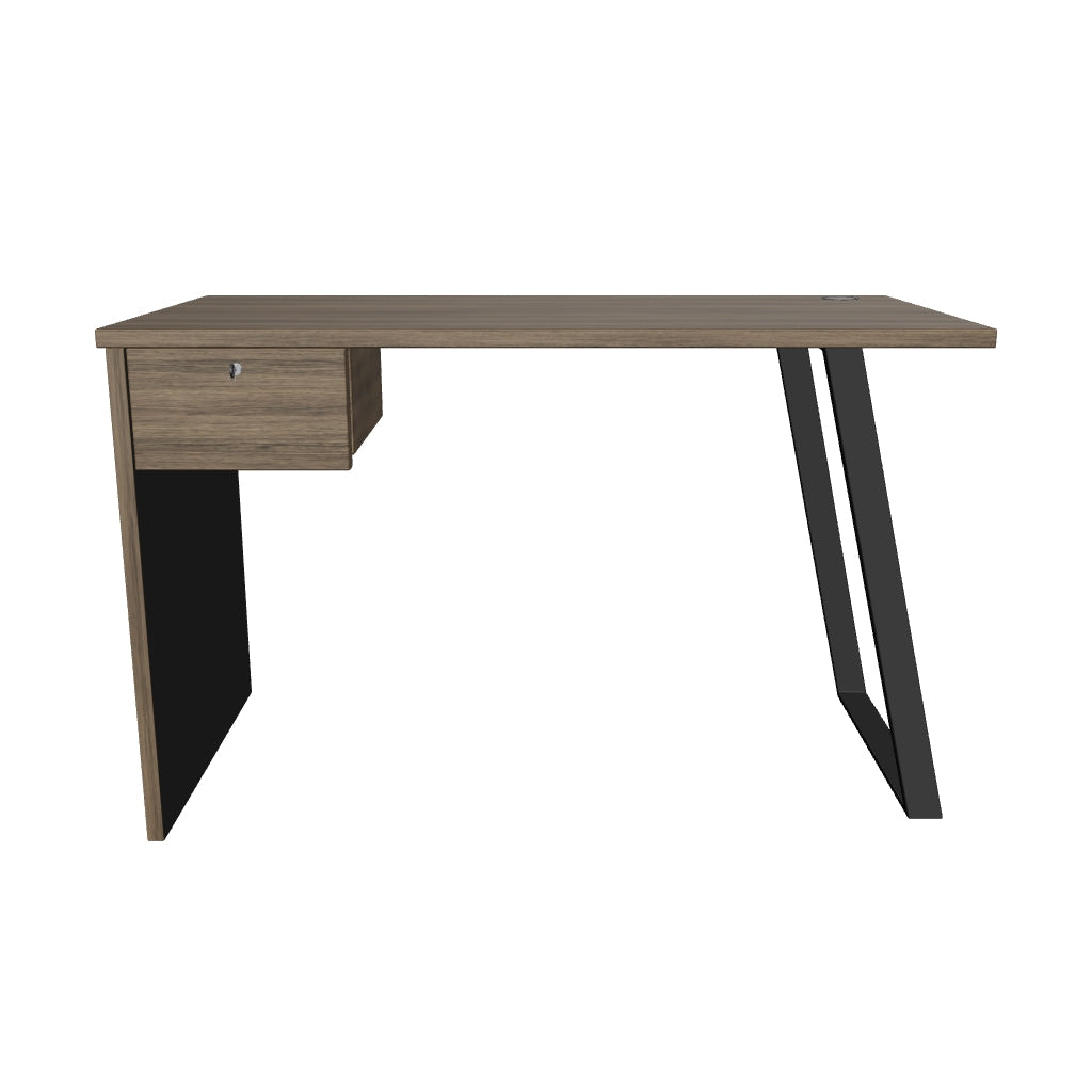 Transform your study or home office with the sleek and modern Voyage Desk 1.0.  Complete with a compact design, this desk combines functionality and style with its natural walnut foil paper finish on the top, drawer head, and structure. The black sticker interior and matching PVC edging ensures a clean and polished look throughout. Built with durable MDF and a sturdy powder-coated black frame, the desk offers lasting  stability. Its space-saving and minimalist design makes it an ideal addition to workspaces of any kind.