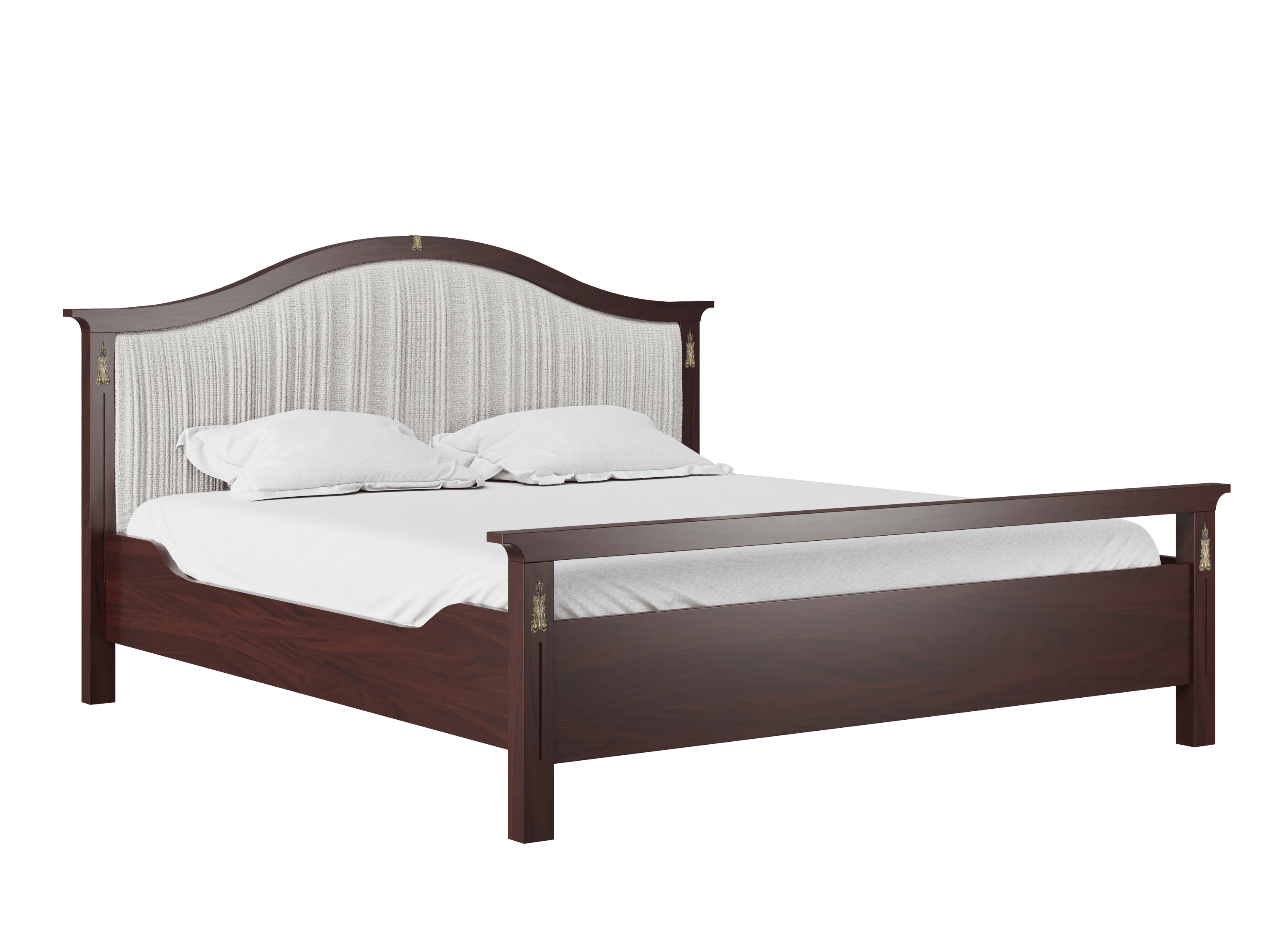 Welcome a classic look in your bedroom with our charming Sienna King bed set. Offering cozy and exquisite comfort, this French-country-styled bed features a graceful arched headboard with tufted velvet upholstery for a grand and inviting look. The off-white fabric linen headboard is contrasted with an open-framed, smoked walnut-finished footboard that gives the bed its imposing look. Detailed metallic embellishments with an antique brass finish add a touch of class to the overall design. The Sienna bed features matching bedside tables and a dresser (and mirror) with a large top surface, spacious drawers, and an open cubby space for storing and displaying bedroom items. Crafted from highly durable mahogany wood veneer, Sienna offers lasting durability for years to come.