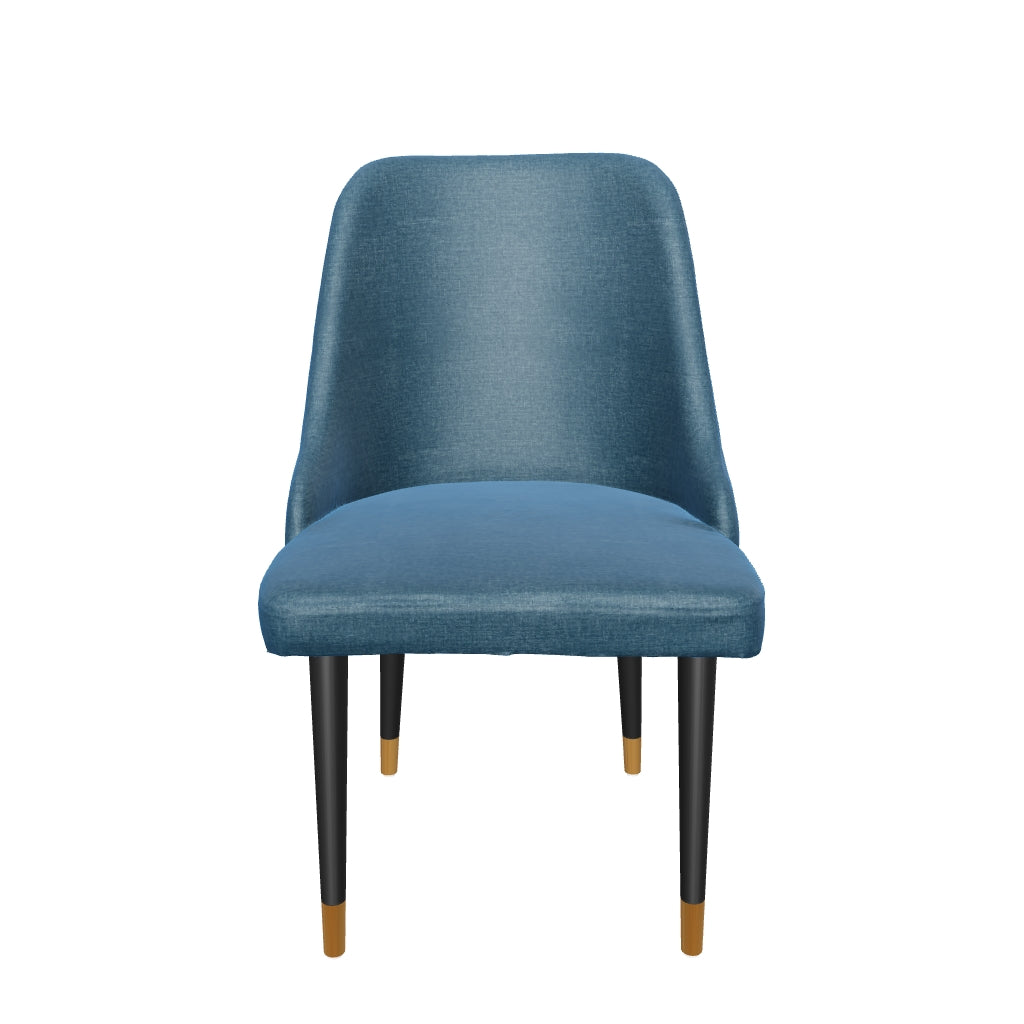 Add elegance and practicality into your dining area with our Coco dining chair. Featuring a refined design with clean lines and smooth contours, Coco’s midnight blue linen fabric upholstery offers a luxurious touch, providing both style and comfort. Its sturdy wooden legs, adorned with a striking black and golden paint finish, ensure both stability and modern flair. The addition of carpet glides ensures easy movement without damaging your floors. Perfectly balancing design and functionality, the Coco dining chair is a chic and practical addition to any dining space, offering lasting comfort and style.
