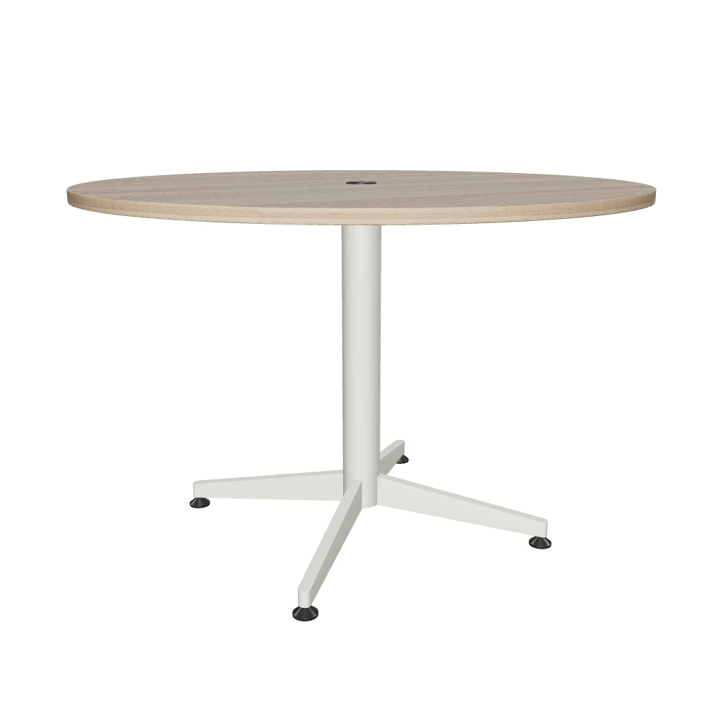 Foster collaboration and teamwork effortlessly with our 3-person Budget Pro Meeting Table. Featuring a round, and minimalistic design with classic Ash MFC top, this table sits atop a sturdy metallic leg base, creating the perfect setting for short gatherings and quick huddles. Its compact and practical size makes it an ideal choice for dynamic work environments where efficient use of space is paramount. The smart cable management with a wire cup and a vertical cylinder ensures that laptops and other devices can be connected seamlessly, promoting a clean and clutter-free workspace. Adjustable rubber glides add a touch of versatility, ensuring stability and adaptability to various floor surfaces, making it a perfect addition for any workspace.
