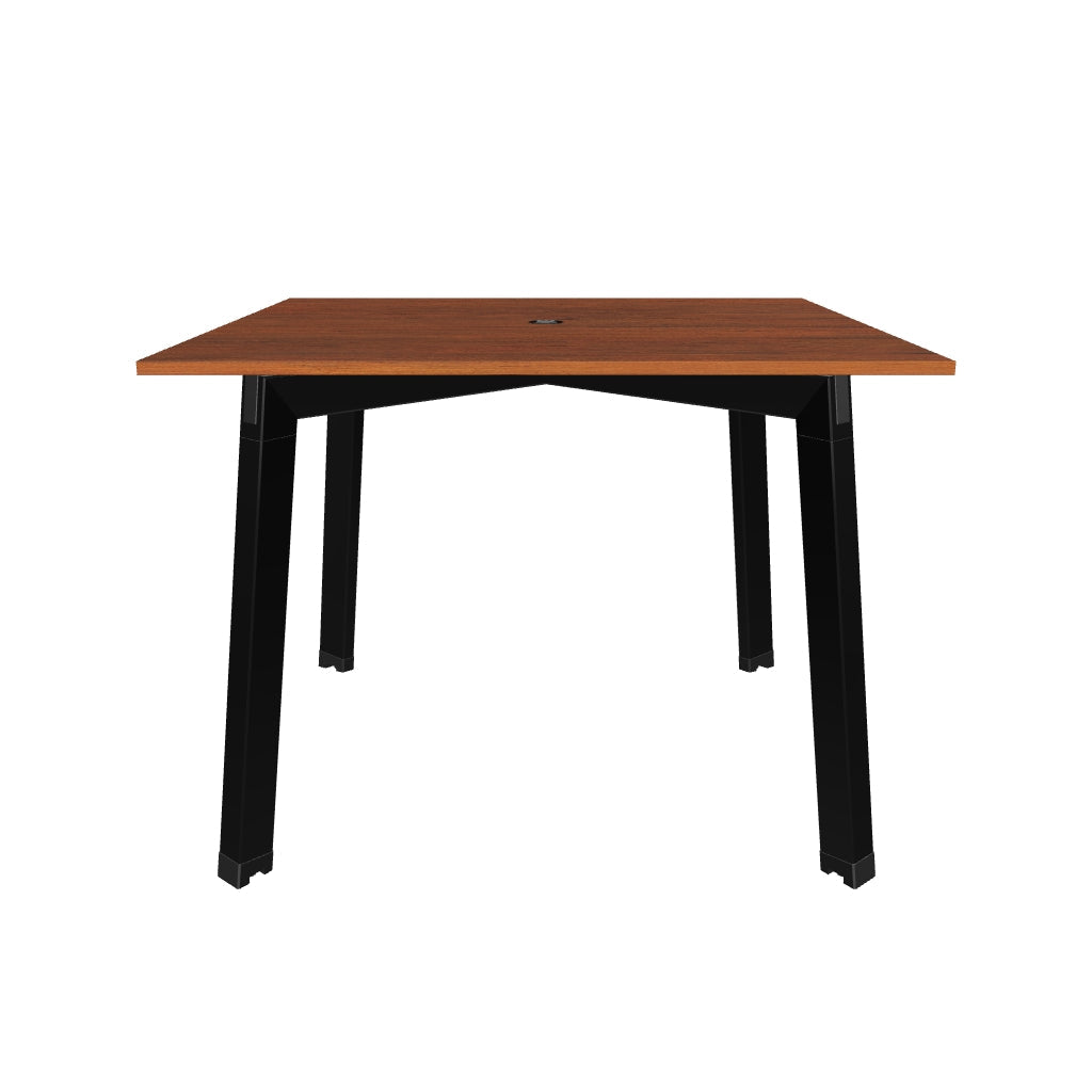 Enhance collaboration and brainstorming sessions with our Triton 4-person meeting table, where modern elegance meets industrial flair. Crafted with a Teak MFC tabletop and supported by sleek triangular metallic legs in a black powder coat, this square table exudes a contemporary aesthetic with an industrial twist. The black wire cup and vertical spine cable management ensure a clutter-free environment, seamlessly blending practicality with visual charm. Whether used for brainstorming sessions or collaborative discussions, this compact meeting table fosters productive interactions, making it a perfect addition to any office setting.