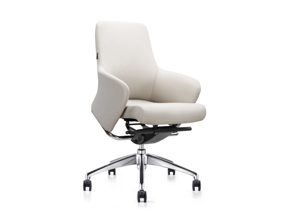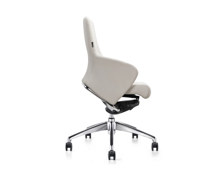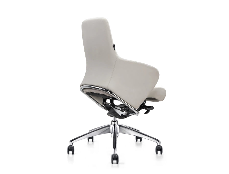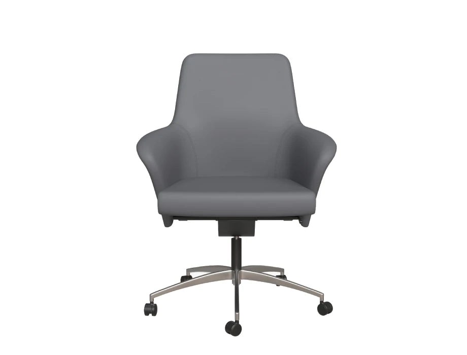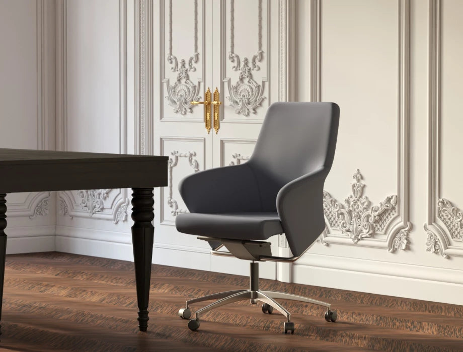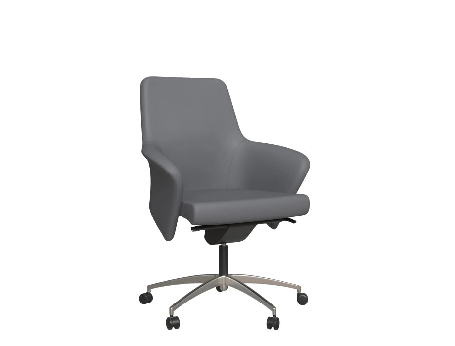 Elevate your workspace with our chic Glasgow manager chair, the epitome of comfort and elegance. Upholstered in sleek dark grey leatherette, Glasgow features a unique and modern design, accentuated by its mid-high backrest, low-scooped arm and minimalistic style. Designed with attention to detail, it features high-density molded foam with a luxurious PU cover, ensuring unparalleled comfort throughout your day. With a 4-position lock mechanism and gas lift, Glasgow can be adjusted to any position for maximum comfort. The sturdy aluminum base guarantees stability and longevity, while smooth PU castor wheels ensure effortless mobility throughout your workspace. Engineered with a high-density plywood frame, this chair is built to withstand daily wear and tear.