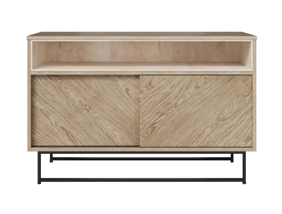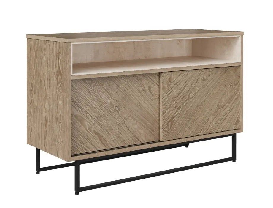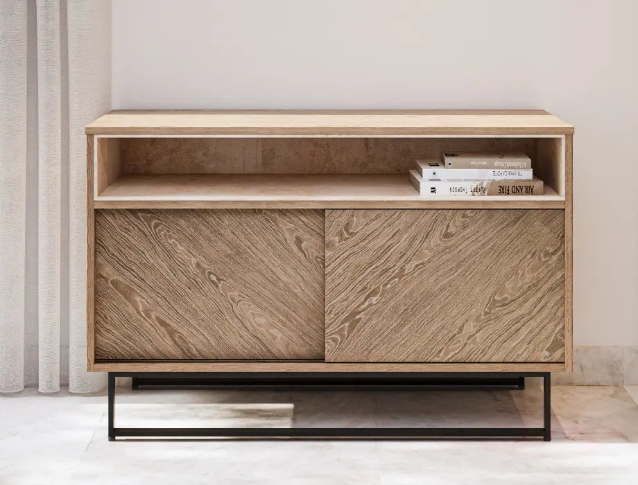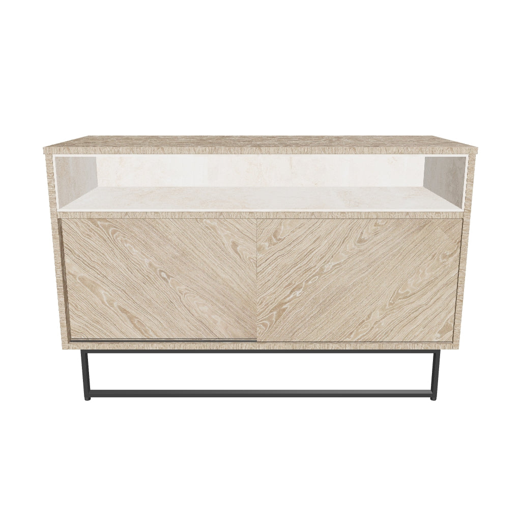 Add Keep your office essentials organized and your space clutter-free with this stylishly designed Sidus Side Rack. Modern, compact, and versatile, this elegant piece lends an eye-catching focal point to any workspace with its attractive design and ample storage space. Exquisite details of highly-durable silver Apricot veneer in natural finish adds to the rustic beauty while the contrasting marble finished MFC gives it an attractive appeal. It features two sliding shutters for storage, Sidus gives you easy access to your paperwork, files, documents, etc. while one open cubby shelf offers additional storage space. Its spacious top let you show off your personal aesthetics without skipping on its beauty. Black coated MS pipe adds to the sleek look and provides lasting support and stability, while the rubber glides at the base protect the floor from unnecessary scuffs and scratches, making it a perfect choice for any office interior. Pair this functional piece with Sidus Executive desk for an optimal office solution.