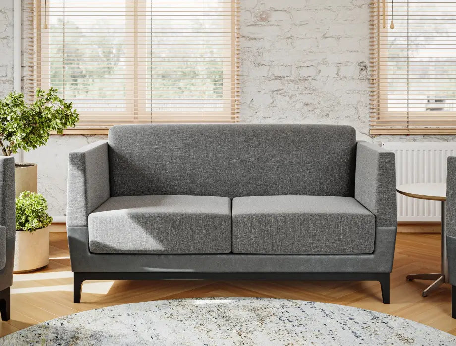 Elevate your home or office with our exquisite single-seater Aston 2.0 sofa. Fully upholstered in plush caramel grey fabric, the back and seat contrast with the brown leatherette base for a harmonious look while supreme foam padding ensures enduring seated comfort with exceptional pressure relief, support, and long-lasting durability without sagging over time. The tuxedo arms supported by a sturdy frame atop mahogany wooden legs with a black stain finish gives an eye-catching look with added comfort. Its contemporary look and compact size, make it an ideal piece for living rooms, lounges, studies, bedrooms and even office spaces. Use this chic piece on its own or pair multiple 1 or 2-seaters to create stylish combinations.