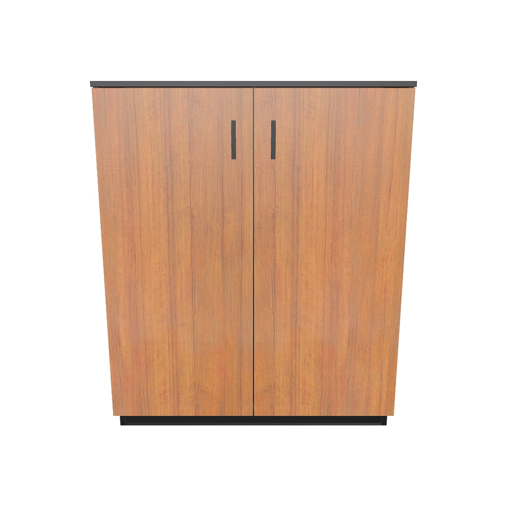 Transform your office storage with the Triton medium height filing cabinet, a harmonious blend of contemporary design and practical functionality. The charcoal grey MFC carcass and Teak MFC shutters create an aesthetic that exudes modern elegance, while the durable MFC plinth ensures stability. With ample top space for added versatility, this cabinet becomes more than just storage—it's a functional surface for organizing documents, displaying decorative items, or facilitating collaborative work. Two fixed shelves within each shutter fulfil all your storage needs while built-in locks add an extra layer of safety to your confidential documents. Its sleek metal drawer handles exude sophistication with easy accessibility, making it an ideal storage solution for any workspace. Pair this functional piece with Triton base filing cabinet for the maximization of your storage space.