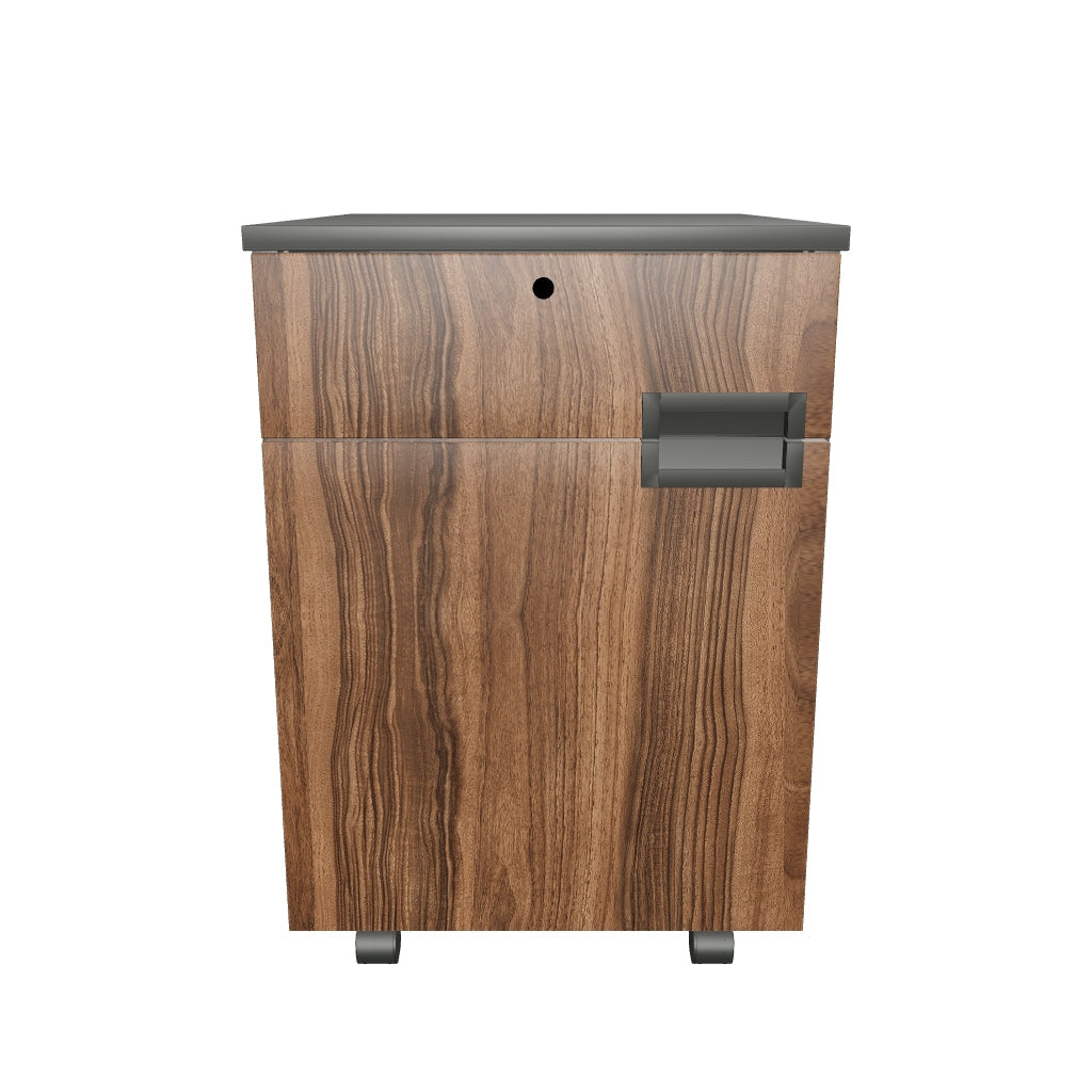 Revolutionize your workspace with our Ozone 2.0 drawer pedestal – where style meets organization. Featuring chic Noce Prenne fronts and a sleek charcoal grey top, this little powerhouse adds a touch of elegance to your workspace. Its drawer and cabinet adorned with metallic handles offers a stylish storage to organize all your office essentials with ease. Zoom around your office effortlessly with caster wheels, making tidying up a breeze. Elevate your office organization with this stylish and practical drawer pedestal for a harmonious and efficient workspace.