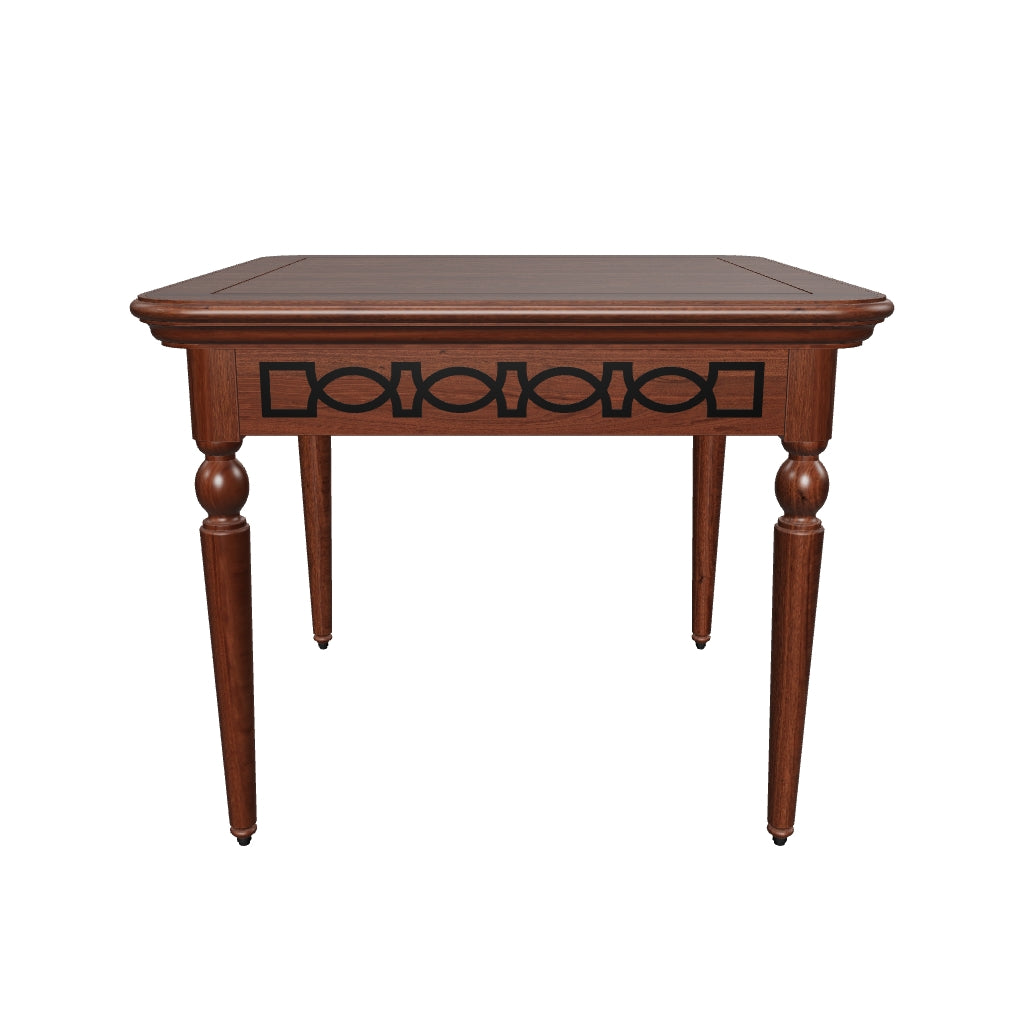Experience timeless elegance with the Conte side table, a stunning fusion of classic design and superior craftsmanship. Crafted from luxurious mahogany wood/veneer and finished in a deep mahogany tone, Conte exudes timeless elegance into any interior. It features a rectangular silhouette, offering a spacious surface for serving trays or displaying decorative accents. The intricate wenge veneer inlay adds a layer of artistic detail, enhancing its rich, polished appeal. With its fluted legs providing a touch of traditional charm and carpet glides ensuring smooth movement, the Conte side table transforms any room into a showcase of classic sophistication.