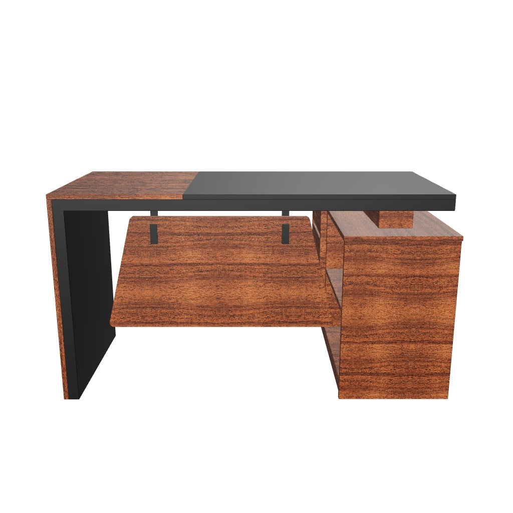 Transform your workspace with the Omega desk, a masterpiece of design that combines elegance and practicality. Its stunning teak and grey MFC finish creates a striking contrast, bringing both warmth and modern sophistication to any office. The spacious desk top offers ample room for your computer, documents, and other stationary items, making it a perfect blend of form and function. Its vanity panel, with sleek metallic fixings, adds an extra layer of refinement and durability to the overall design. Complementing this, the integrated side rack offers additional functionality with a spacious drawer, a cabinet with shutter, and an adjustable shelf creating two versatile compartments, offering open and concealed storage space for all your office essentials. The spacious top of the side rack provides an additional surface for organizing your office supplies or displaying decorative items, making omega desk a perfect blend of style and functionality.