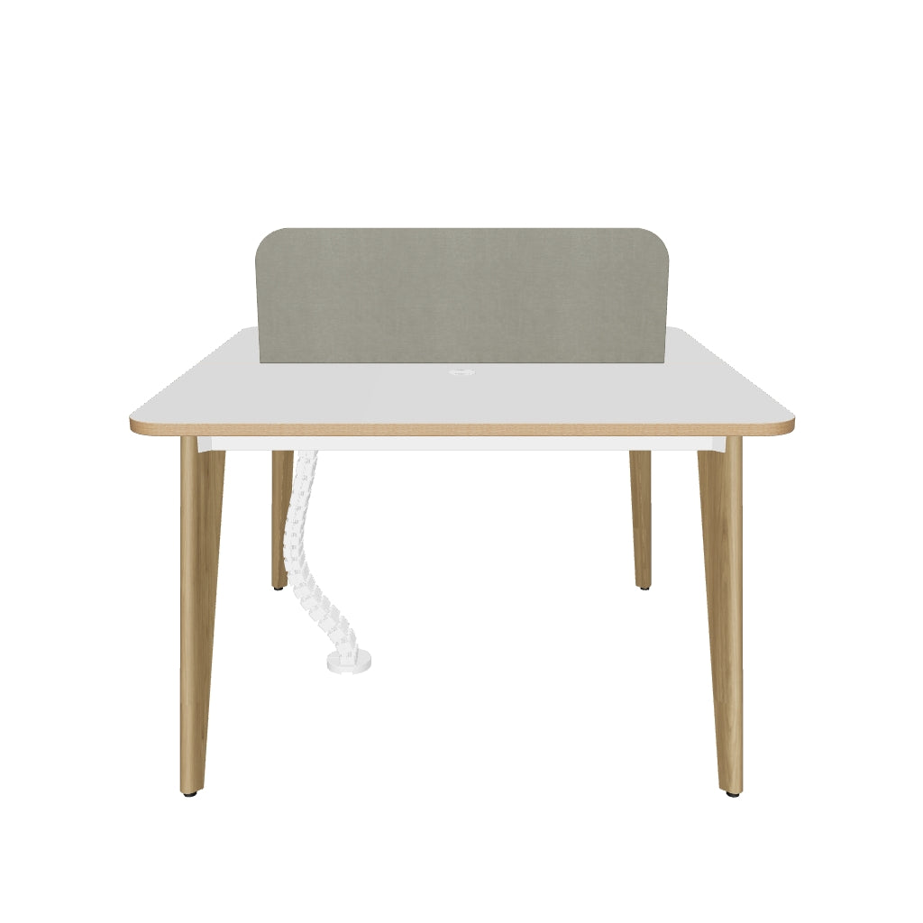 The Orwell Workstation Series brings a perfect balance of style and utility to collaborative office environments. Available in multiple configurations, it features clean white laminated tops and sage-green fabric partitions that add warmth and privacy to each workspace. The workstation stands on sturdy classic ash-stain finish beech wood legs, ensuring long-lasting support and visual appeal. Thoughtfully designed with ample legroom and a wire management system, the Orwell series also includes mobile drawer pedestals for individual storage needs. It’s simple and adaptable layout makes it ideal for various professional interiors.