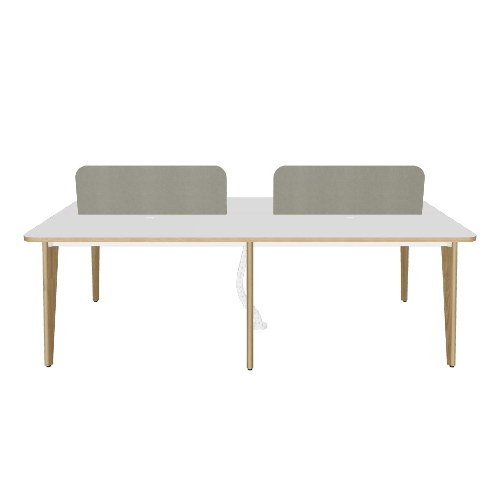 The Orwell Workstation Series brings a perfect balance of style and utility to collaborative office environments. Available in multiple configurations, it features clean white laminated tops and sage-green fabric partitions that add warmth and privacy to each workspace. The workstation stands on sturdy classic ash-stain finish beech wood legs, ensuring long-lasting support and visual appeal. Thoughtfully designed with ample legroom and a wire management system, the Orwell series also includes mobile drawer pedestals for individual storage needs. Its simple and adaptable layout makes it ideal for various professional interiors.