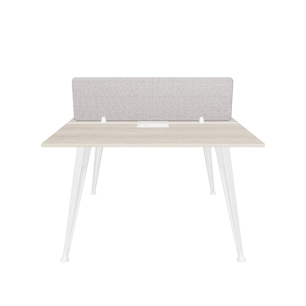 Create an efficient and organized workspace with the compact Ariel 2-person linear workstation. Featuring a contemporary design, this stylish linear workstation offers ample table top space for one with the advantage of a soft board partition in mesh grey fabric for privacy and a place to tack notes and pictures. The surface is crafted from Aland Pine MFC in fine brushed lines with knots atop a white powder-coated aluminum casted metal base for sleek and modern look. A built-in stationery tray and spine cable management solution help keep items and wires neatly organized and concealed. Extend this linear configuration to add more efficient workspace for unlimited amounts of individuals (depending on your space and needs). Personalize this workstation with a variety of add-ons such as dual-purpose storage partitions, drawer pedestals, CPU trolleys and more to maximize its utility.