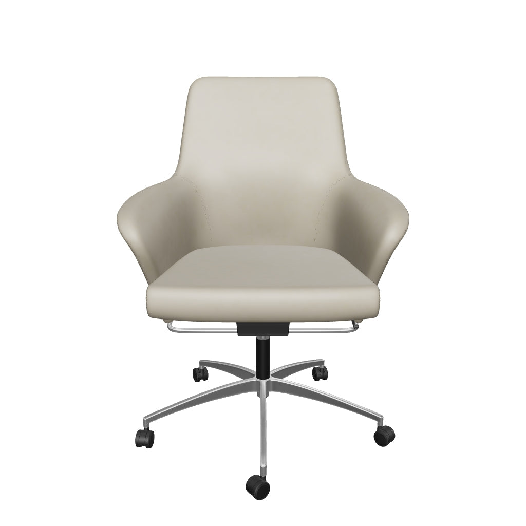 - Low-scooped arms for added comfort.