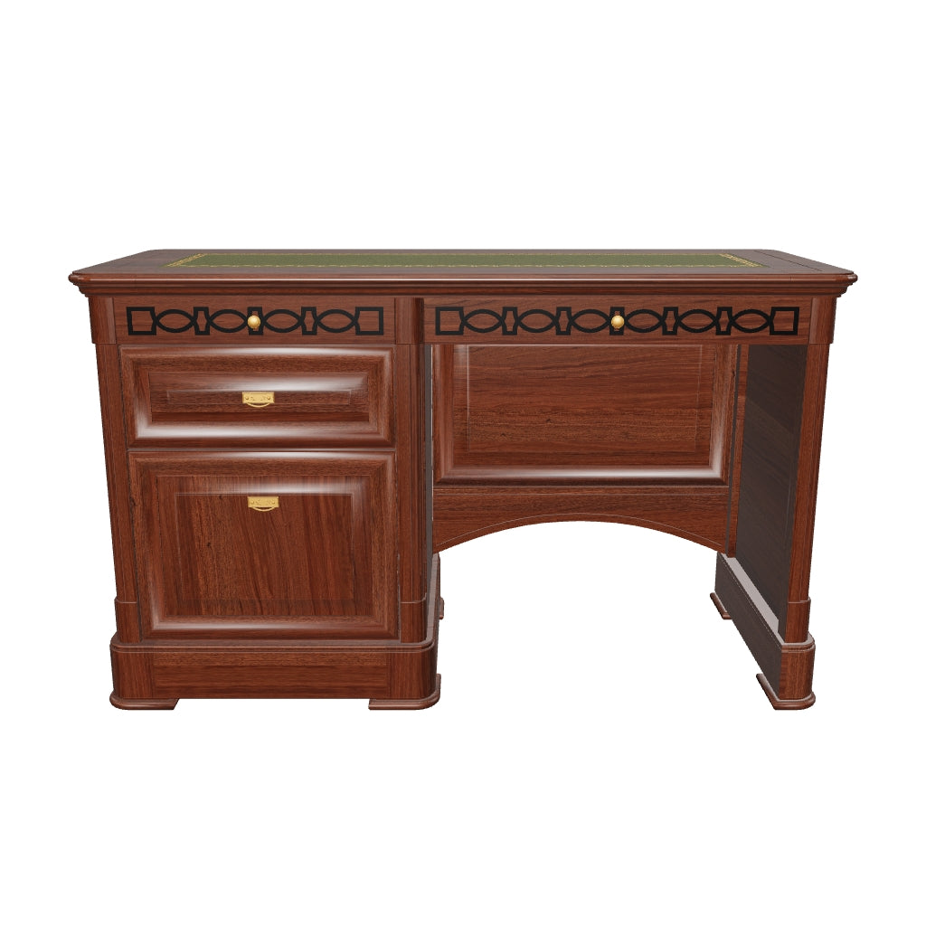 Enhance your space efficiency with the Conte side rack. Crafted from premium mahogany wood/veneer and finished in a rich tone, this side rack embodies timeless sophistication. The edges are adorned with intricate wenge wood inlay, adding a touch of luxury, while the spacious top features built-in green leather padding with contrasting inlay for an extra layer of elegance. Designed with practicality in mind, the Conte side rack offers ample storage options with a standard drawer, a roomy drawer for larger items, a small accessory drawer, and a convenient keyboard tray—all featuring soft-closing channels to prevent slamming and lined interiors for added protection. Wireless charging on the top keeps your devices charged while antique brass finished handles and knobs lend a classic charm, making Conte a functional and stylish addition to any office space.