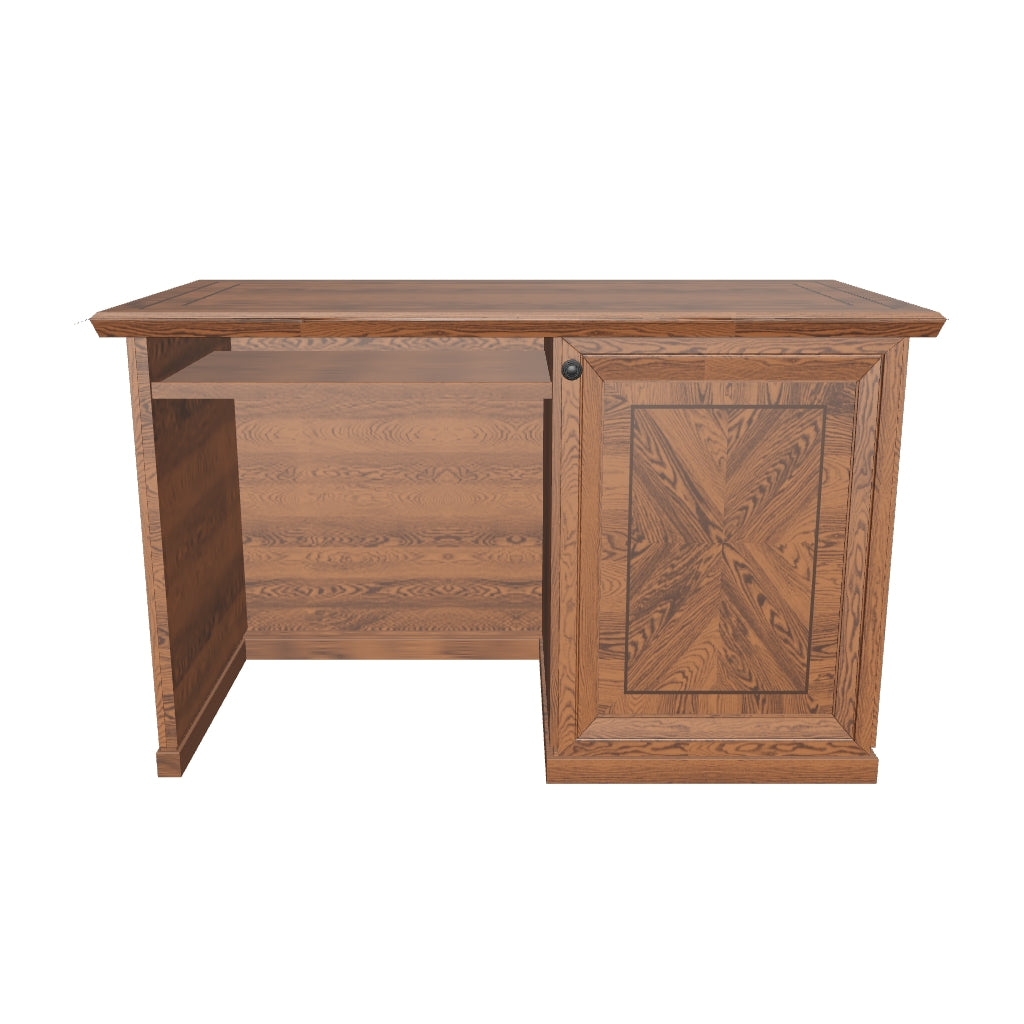 Experience the ideal fusion of vintage style and modern functionality with our Traditional side rack, perfect for any workspace. Meticulously crafted from premium ash wood and oak veneer, and finished in a rich Jacobean polish, this elegant rack exudes classic charm. Its spacious top provides ample room for all your work essentials, making it a practical addition to any workspace. Featuring a beautifully designed lockable shutter with an adjustable shelf inside, it allows you to organize and store your items securely. The overall running molding adds depth to its classical style, giving it a timeless appeal, while the antique brass knob adds a touch of vintage charm. For added convenience, the rack includes a keyboard tray to keep your workspace tidy and efficient and a wire cup for effective cable management, ensuring a clutter-free environment. Pair it with a traditional desk to create a cohesive and elegant workspace that exudes both style and practicality.