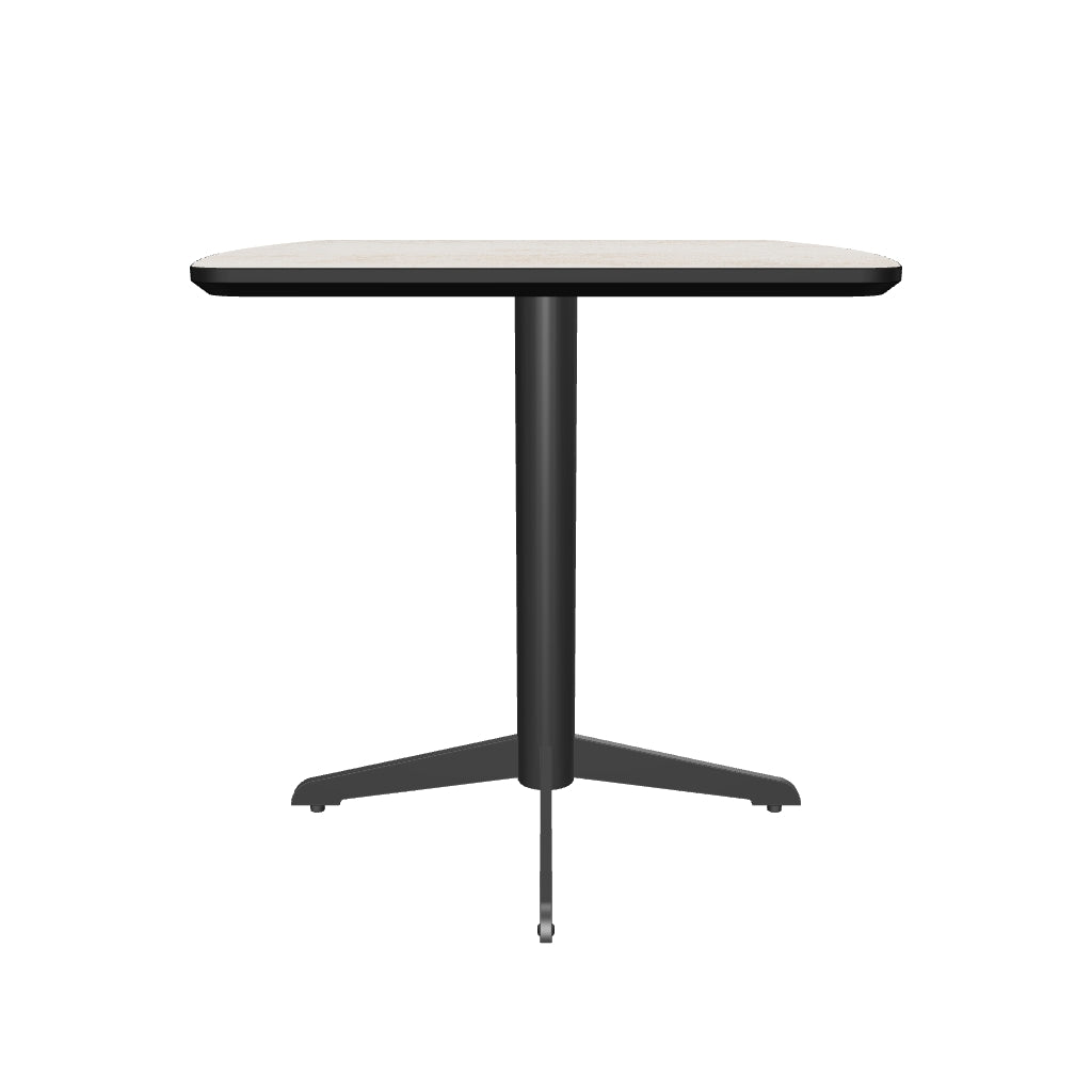 - An elegant marble-finished square MFC top with a calcite tone and a four-pronged sleek black metallic powder-coated base give it a modern feel.