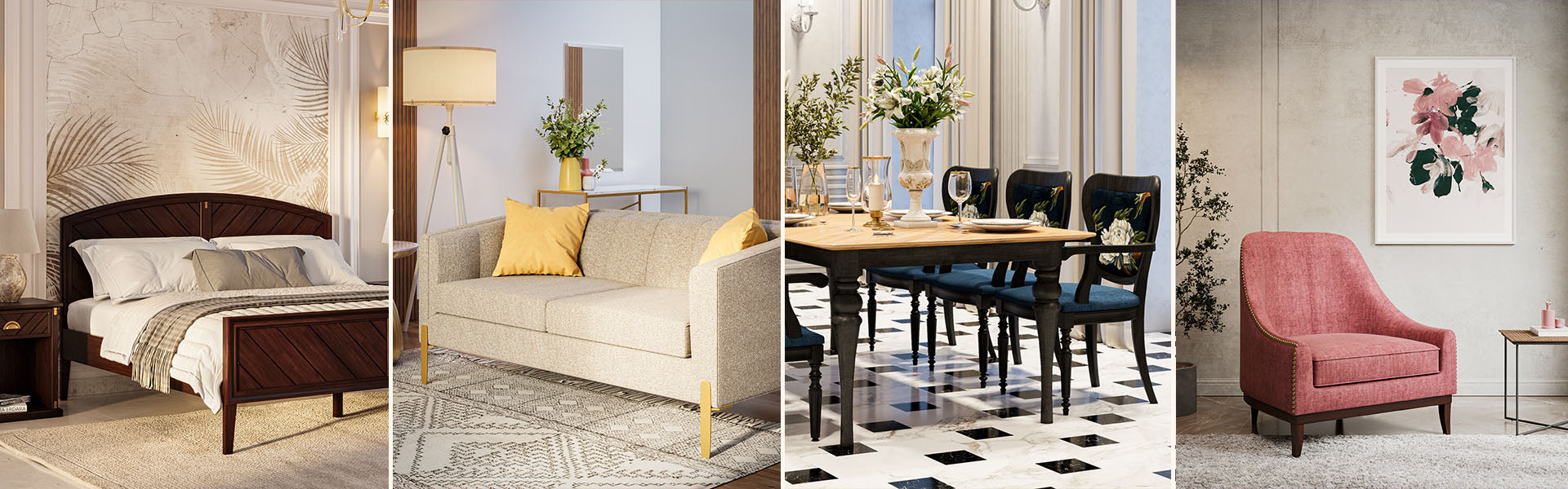 Turn your bedroom into a space of calm, comfort, and quiet luxury. From upholstered bed sets to elegant dressing tables and wardrobes — find everything to create your dream escape.