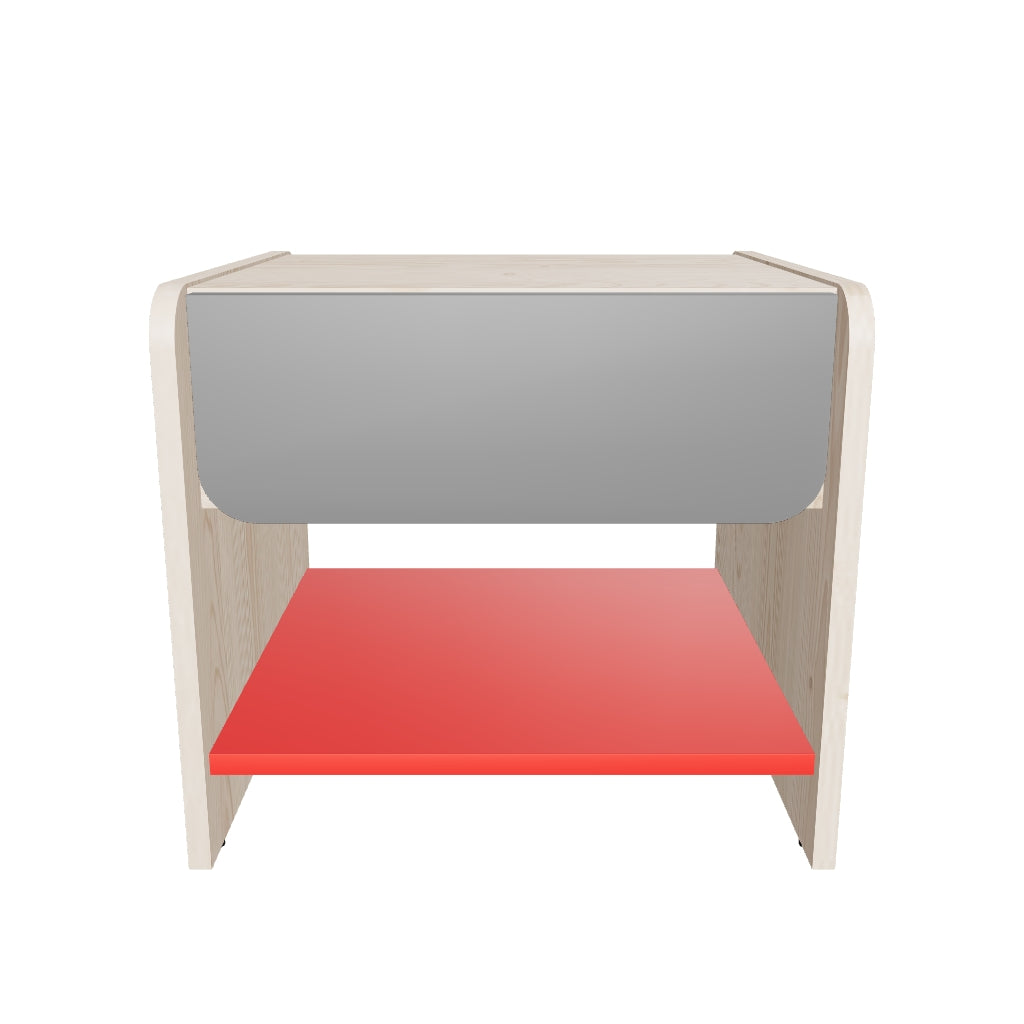 Enhance the charm of your child's bedroom with the Wilson Bedside Table, a perfect companion to the Wilson single bed. This bedside table features a delightful combination of functionality and style with a grey MFC headboard on the drawer and a red MFC shelf, both set against a pine MFC structure, adding warmth and color to the whole design. The single handle-less drawer provides ample storage and ensures a clean and modern look, while the open shelf underneath offers additional space for essentials. The protective rubber glides add a practical touch, making it a sturdy and kid-friendly addition to the bedroom.