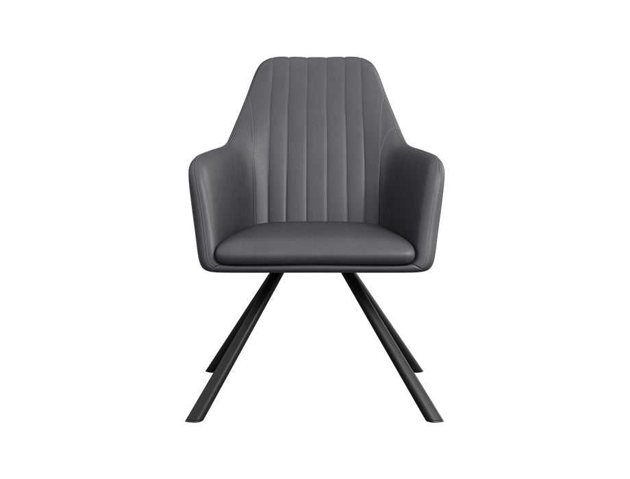 Experience the epitome of elegance and style with our Deco dining chair. Featuring premium leatherette upholstery in grey tone, adorned with vertical channel tufting at the backrest, Deco combines luxurious comfort and impeccable design, inviting you to indulge in utmost opulence. Supported by sleek metal legs finished with a black powder-coat, this chair effortlessly blends strength and style. Whether it's an intimate gathering or a lavish dinner, this chair guarantees hours of comfort and adds a touch of sophistication to any dining space. Elevate your dining experience with our extraordinary Deco chair and make a lasting impression on your guests.