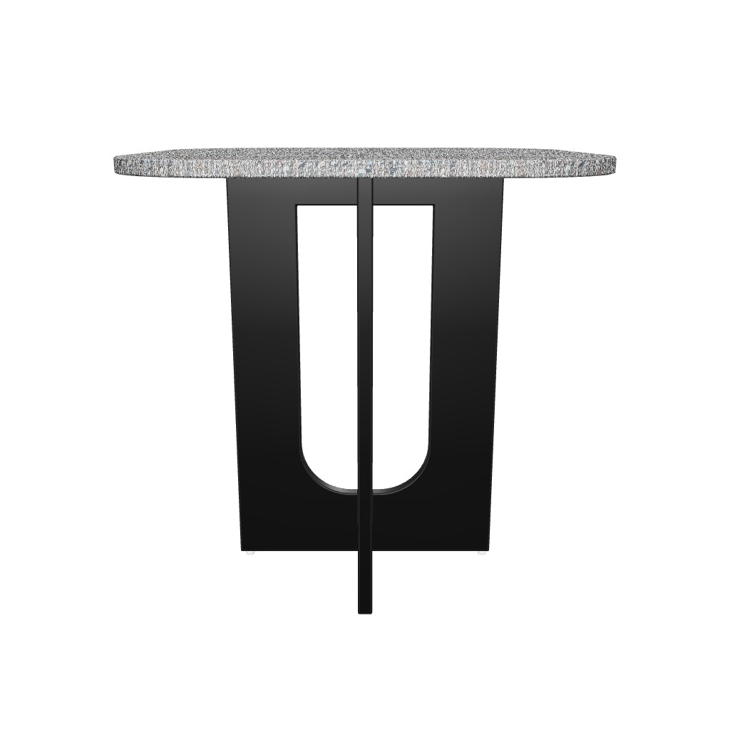 Bring a touch of modern sophistication to any room with the elegant Kav side table. Compact and elegant, featuring a square chalk grey table top with smooth round edges, this stylish piece offers ample surface space for displaying potted plants, decorative accents, books, magazines, and more. Its focal point lies in the innovative black painted MFC double pedestal base, which reimagines a classic mid-century style with captivating arched cutouts and an intersecting design. It adds a touch of visual intrigue and modern flair, making the Kav side table a conversation starter in any setting. Carpet glides on the base ensure smooth movement while protecting floors, making it ideal for any living room, bedroom, lounge, and more.