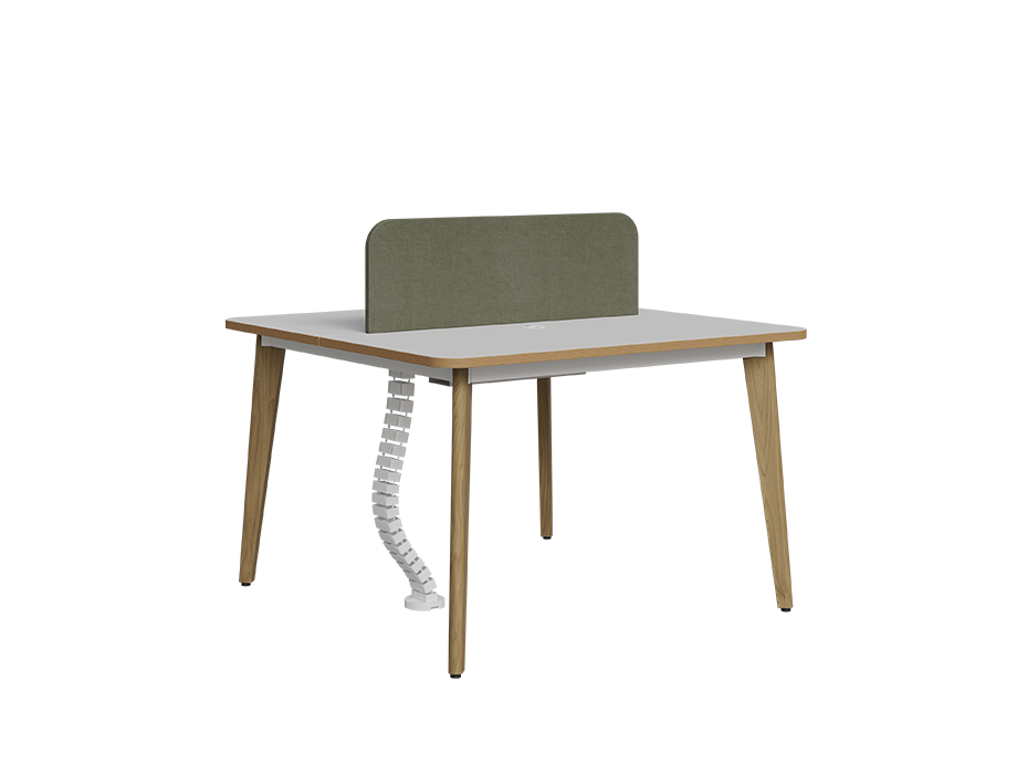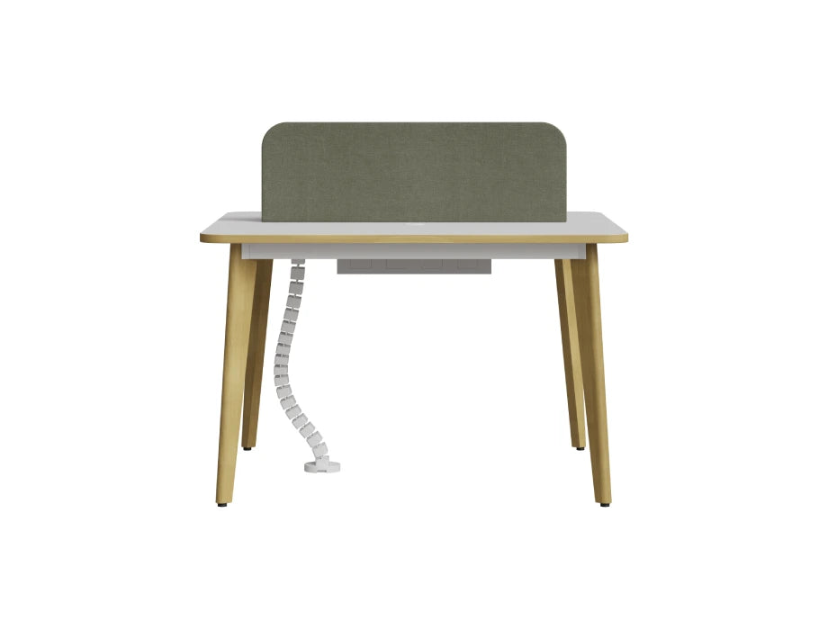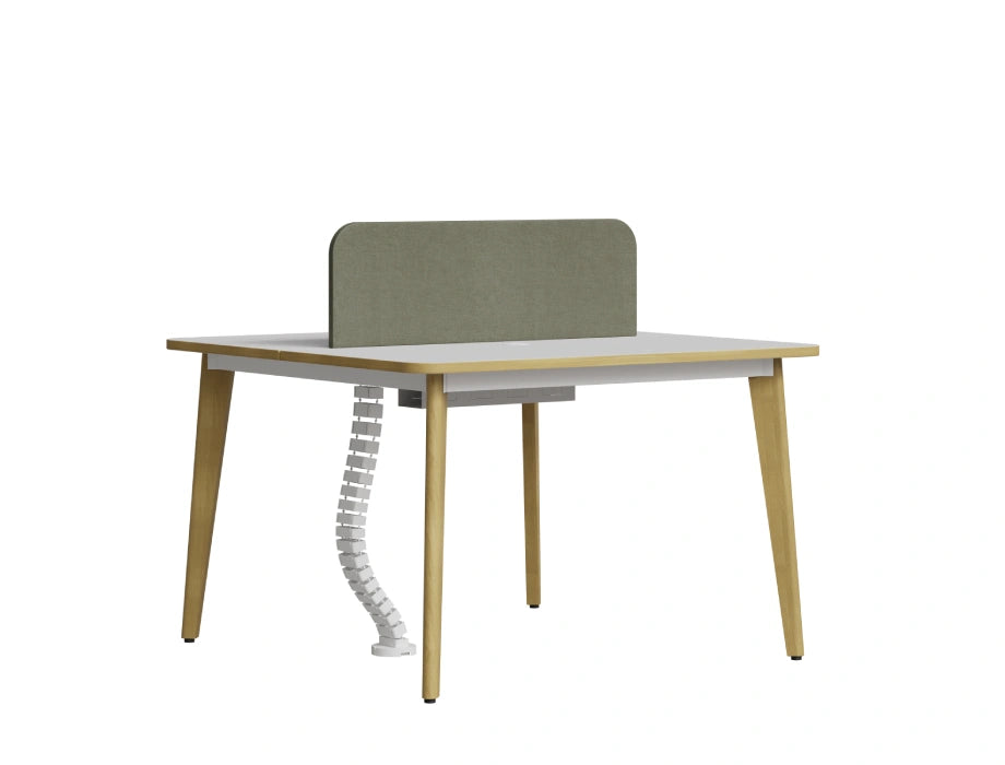 The Orwell Workstation Series brings a perfect balance of style and utility to collaborative office environments. Available in multiple configurations, it features clean white laminated tops and sage-green fabric partitions that add warmth and privacy to each workspace. The workstation stands on sturdy classic ash-stain finish beech wood legs, ensuring long-lasting support and visual appeal. Thoughtfully designed with ample legroom and a wire management system, the Orwell series also includes mobile drawer pedestals for individual storage needs. It’s simple and adaptable layout makes it ideal for various professional interiors.